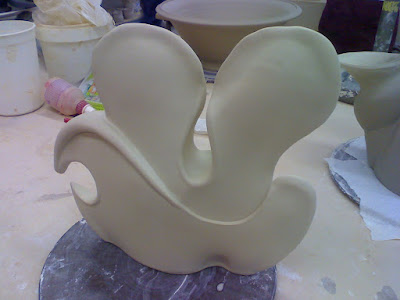 One of the hardest things for me to do right now is to decide how I want to glaze my work. I feel that each peice is unique and requires special attention and detail to how it should be glazed. Right now most my work through this semester is still sitting on my shelf waiting to be glazed. I will be wood firing some of them to get a random effect to oppose the form. I will also be experimenting with automotive paint and different layers of color. I will post them when they are all finished.